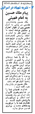 در اینمقاله مشاهده میکنید که ملک حسین از پذیرفتن شاهنشاه اریامهر که سالها به او کمککرده بود ، خود داری میکند.